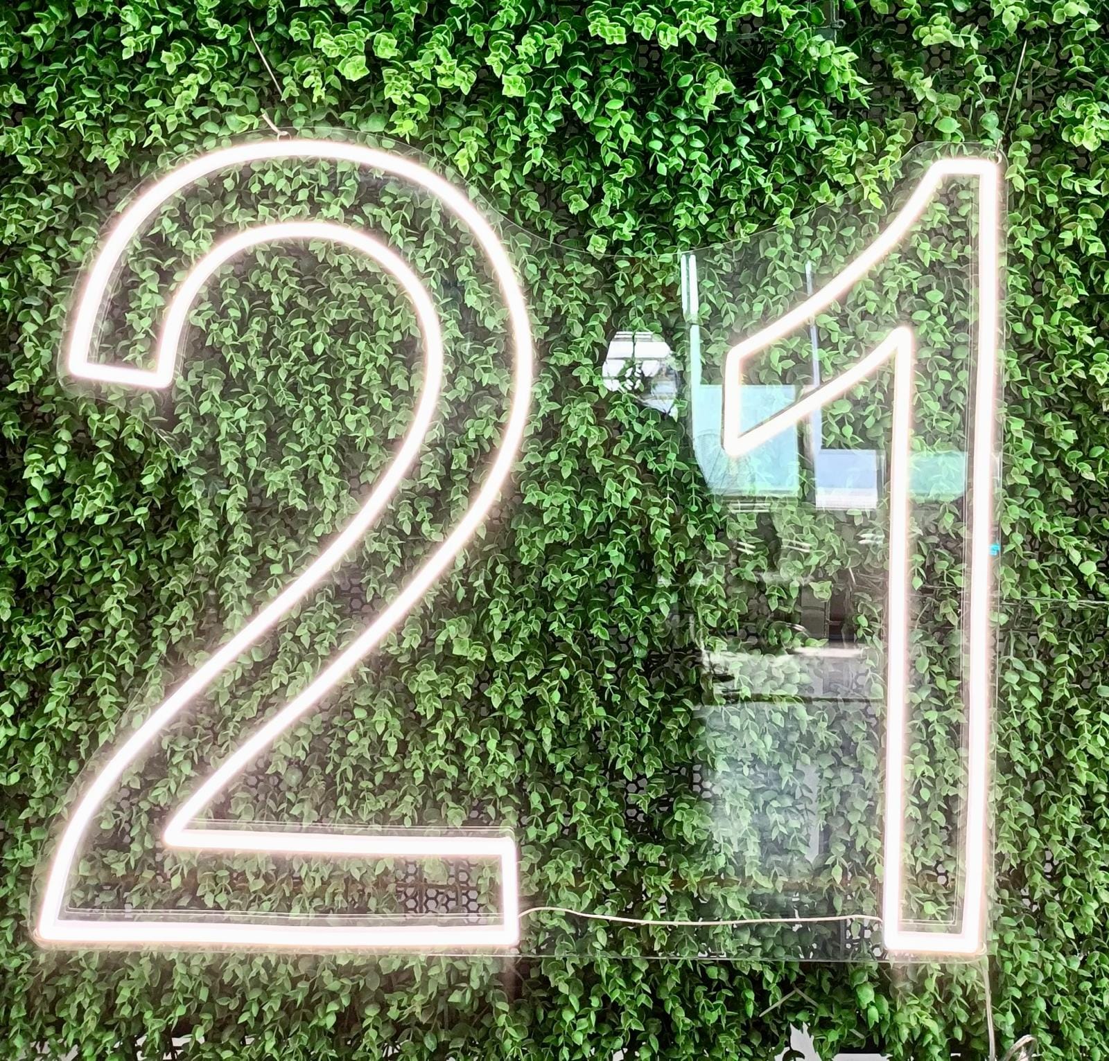 Make your 21st birthday shine with our Twenty One Neon Sign. It’s a fun and vibrant addition to your party setup, perfect for photo walls, backdrops or a stand-alone setting.
